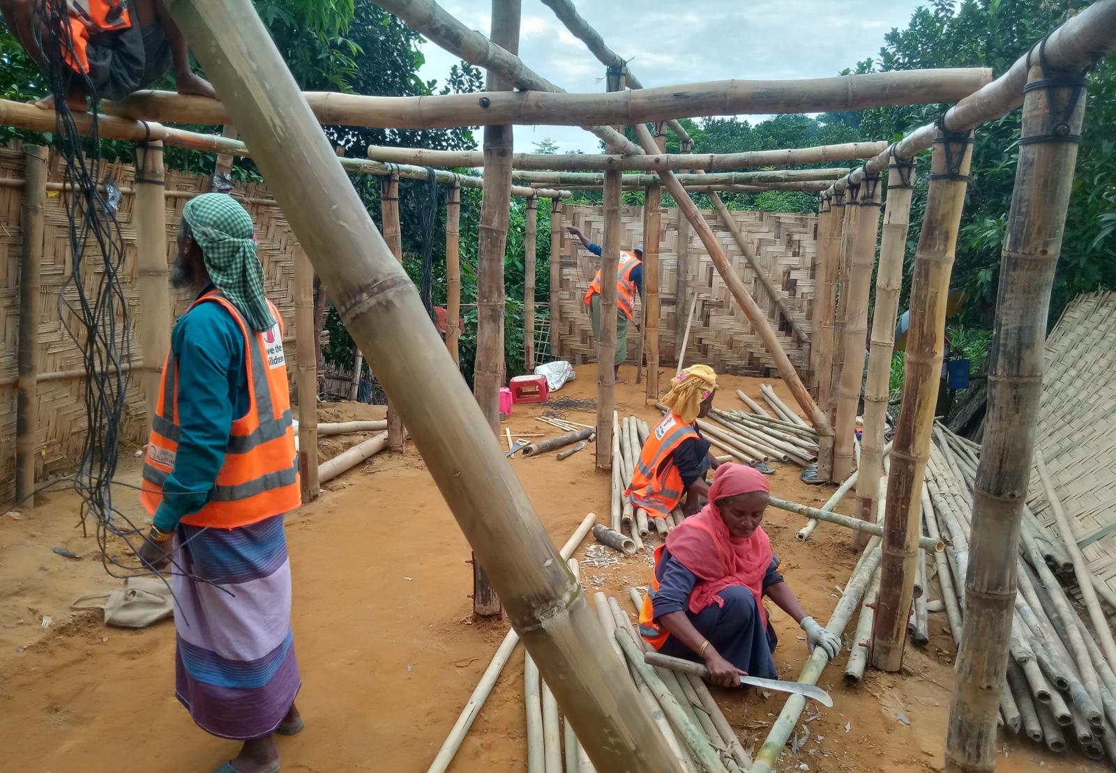 バングラデシュ・コックスバザールの避難民キャンプで、女性避難民にシェルター(仮設住居)を設置・修繕するための技術研修と、家計・防災管理などの能力強化を実施。