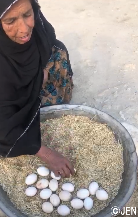 写真の女性は時間と体力に余裕ができ、養鶏で少しずつ収入を得られるようになりました。