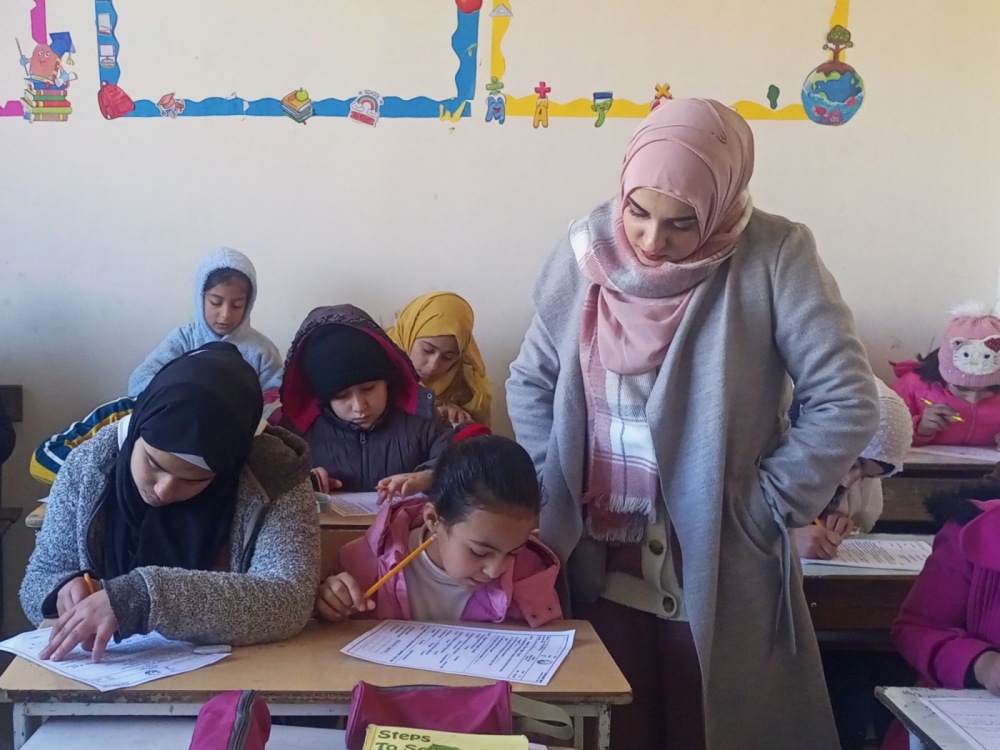 就学率の低いレバノン北部の町で教育支援を行っています。学校の空き教室を活用し、難民キャンプの子どもたちに学びの場を提供しています(イラク・シリア人道危機対応支援より)