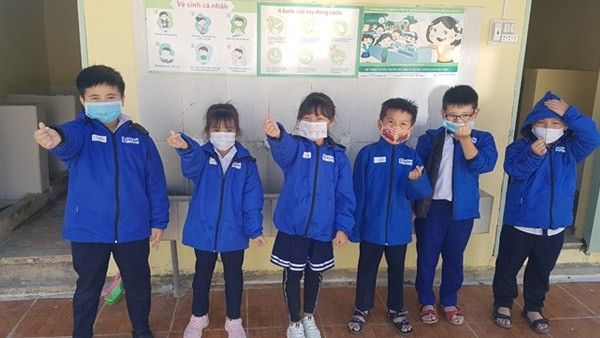 嬉しそうな様子の子どもたち。 着ているのはJPFとPLANのロゴ入り上着 ©PLAN
