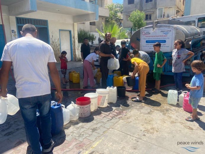 ジャパン・プラットフォーム(JPF)加盟NGOのピースウィンズ・ジャパン(PW)は、ガザ地区のほぼ全域で食料・物資の配付、給水支援を行っています。