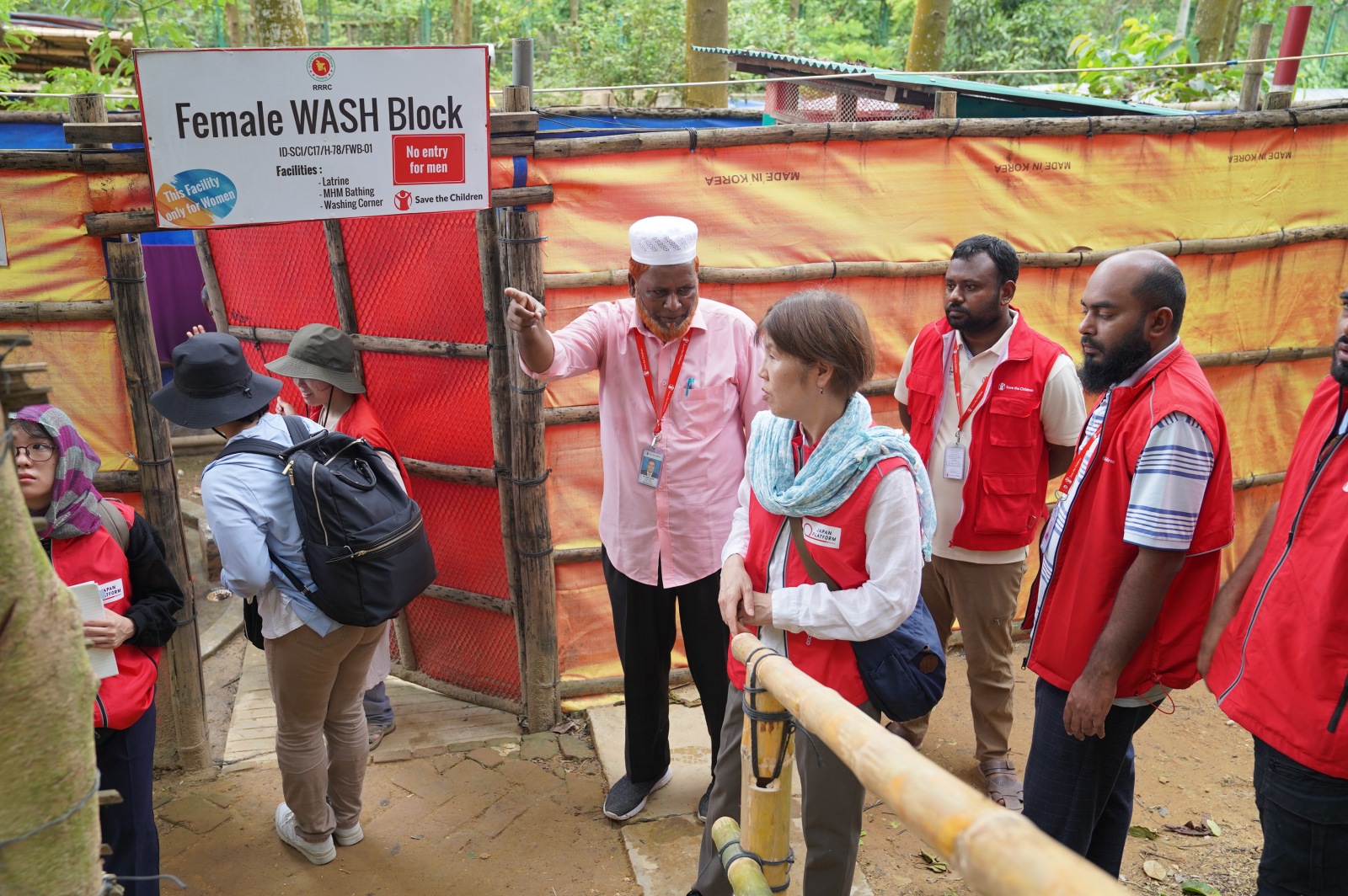 上の写真は、女性専用の施設です。扉の向こうには井戸とトイレがあり、女性が男性の目を気にせず自分の衣類を洗濯することができます。避難生活を送っている方々の多くはイスラム教徒です。イスラム教では、基本的に男女が別々のスペースや施設を利用します。この施設は、女性だけで集まることのできる憩いの場所にもなっています。