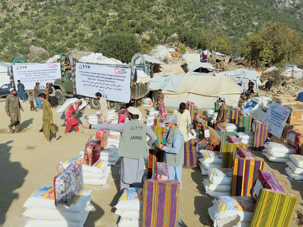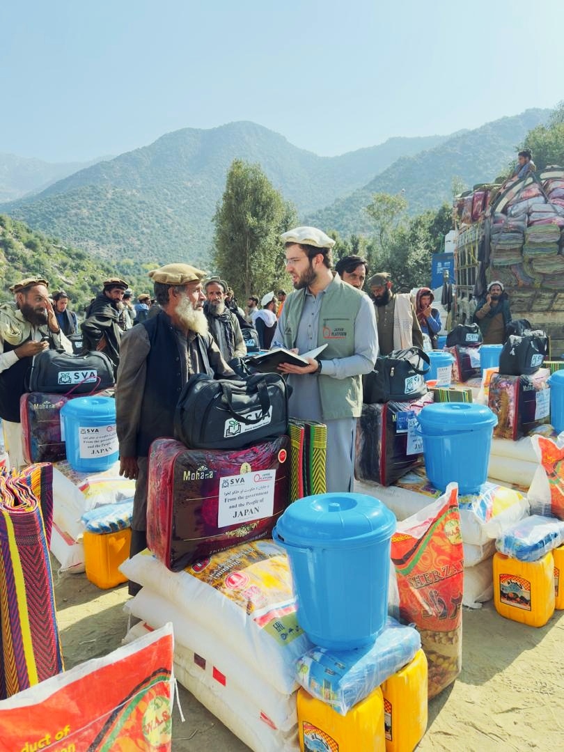 ジャパン・プラットフォーム(JPF)加盟NGOのシャンティ国際ボランティア会(SVA)は、10月28日、甚大な被害を受けたクナール県ヌルガル郡で、食料と生活必需品の配布会を実施しました。