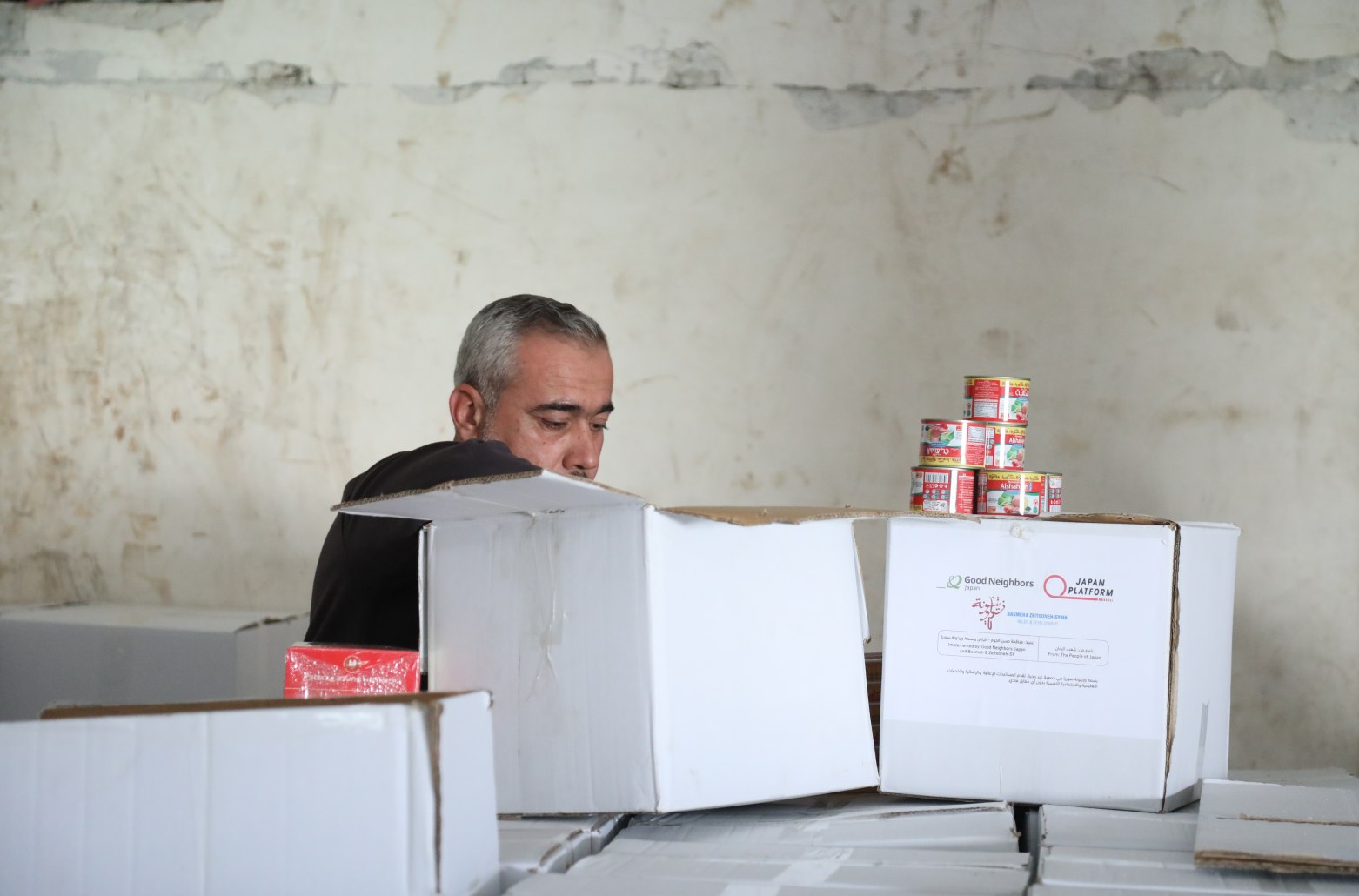 対象者は、現地の支援機関や団体と調整して選定します。優先するのは、いずれの県でも弱い立場に置かれた世帯・人です。食料は、パスタや米などの炭水化物、豆類などのたんぱく質、缶詰の野菜などに加えて、シリアの人々に欠かせないお茶もパッケージします。配付前には、賞味期限や質などを確認し、万が一問題があったときのために連絡方法などを記した紙を同封します。