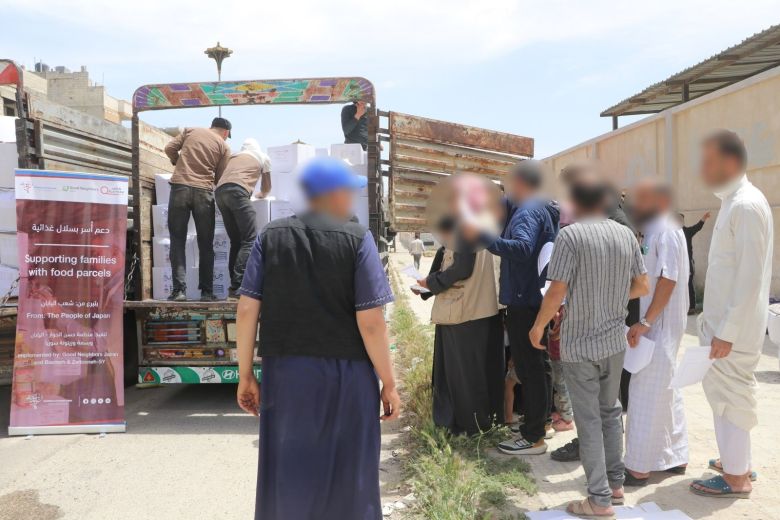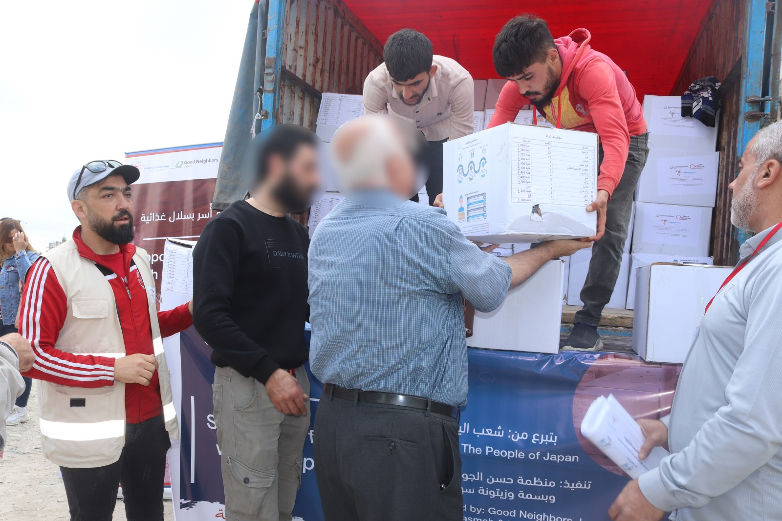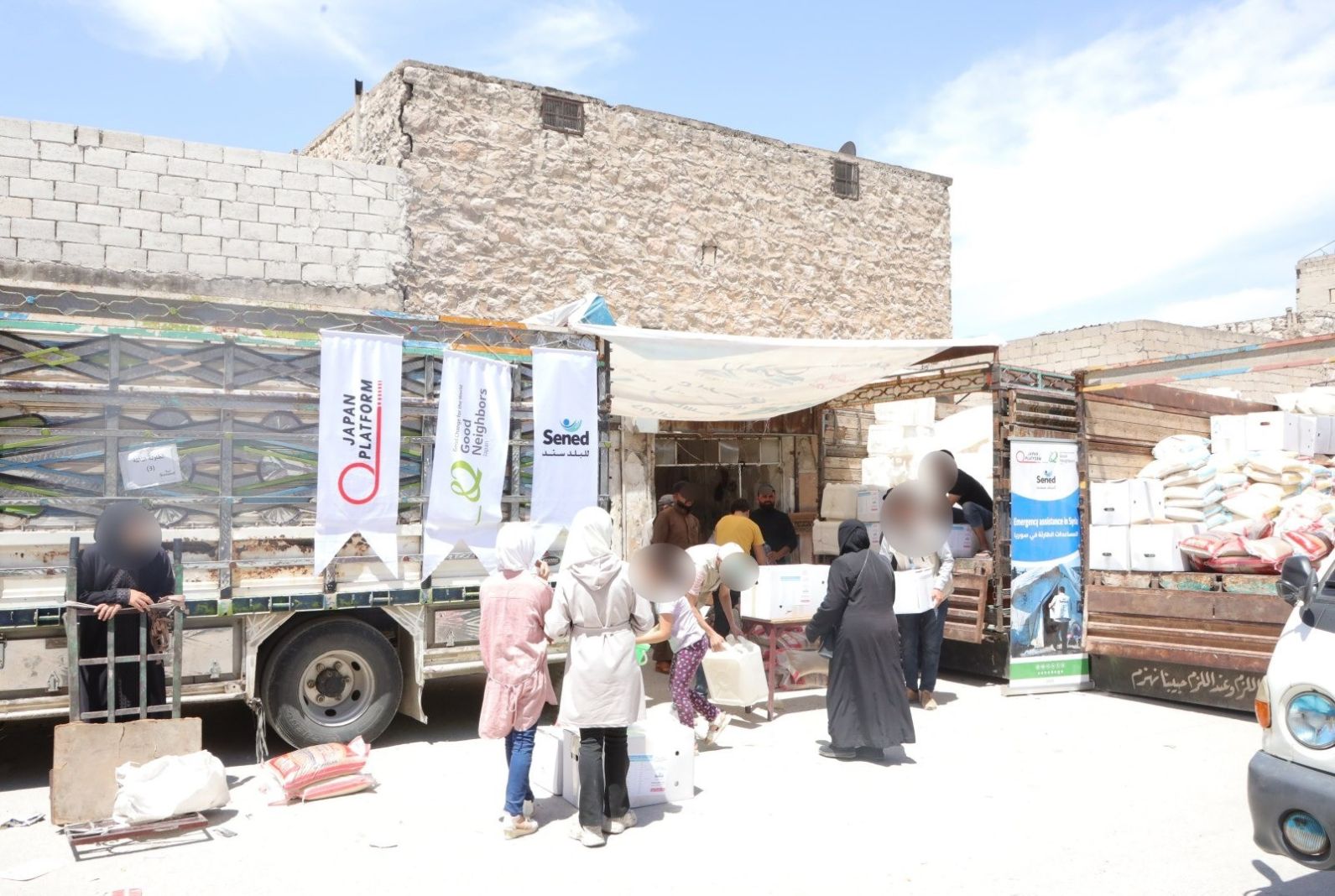 ジャパン・プラットフォーム(JPF)の加盟NGOは、4月から6月にかけて現地パートナー団体の協力のもと、シリア国内3県でのべ3,916世帯(22,043人)に食料と衛生用品を配付しました。