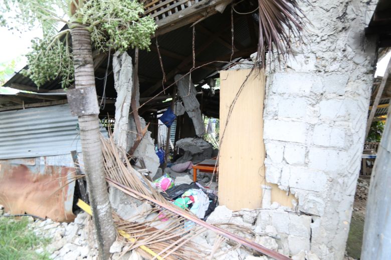半壊した住宅。とても安心して住める状態ではない/フィリピン・セブ島北部のサンレミジオ町内/2025.10.29 ©️CWS Japan