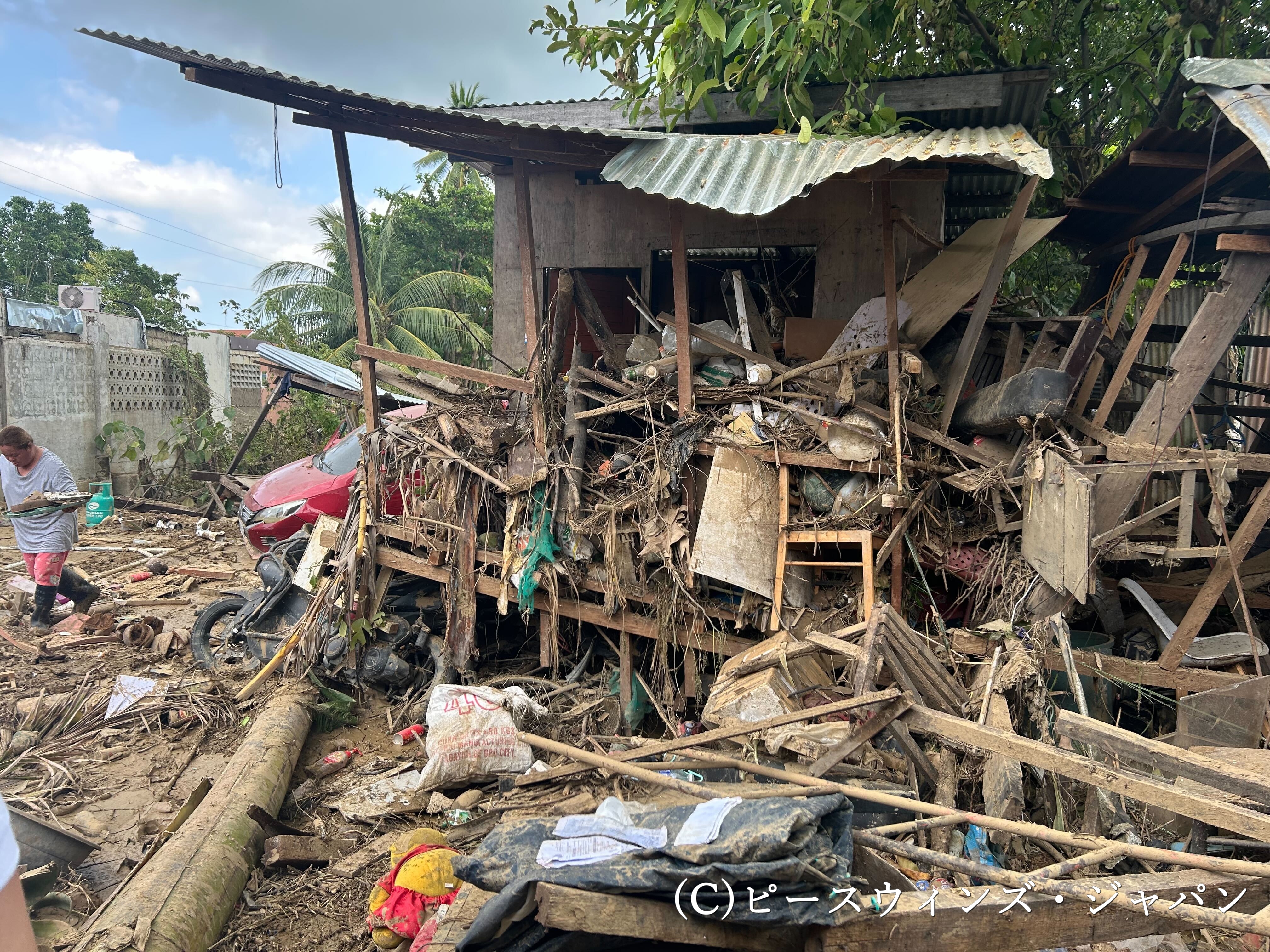 洪水で水位はあっという間に屋根の高さに/フィリピンLilion/2025.11.07 🄫ピースウィンズ・ジャパン