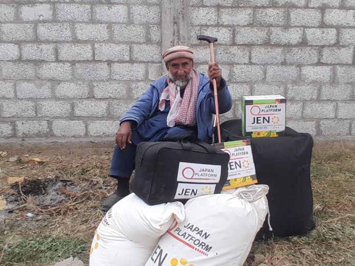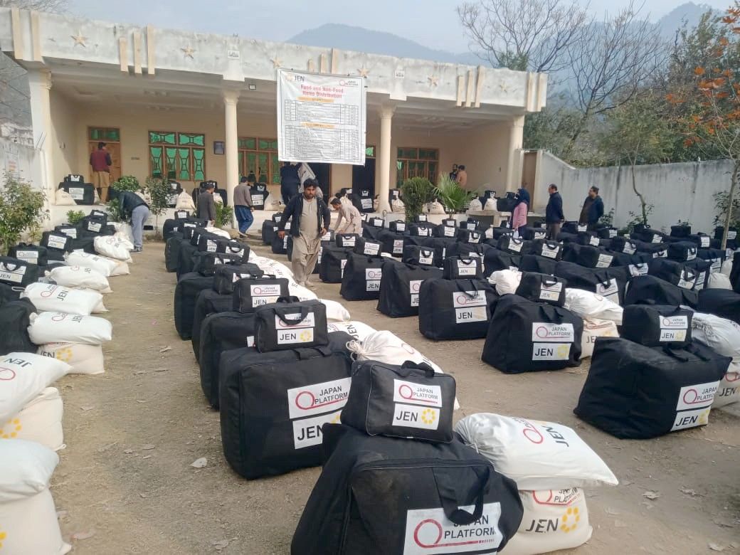 こうした状況を受け、ジャパン・プラットフォーム(JPF)は加盟NGOのジェン(JEN)を通じて、被害を受けたハイバル・パフトゥンハー州の5つの村で食料のほか、防虫対策品、防寒衣料、寝具などの配付支援を行っています。