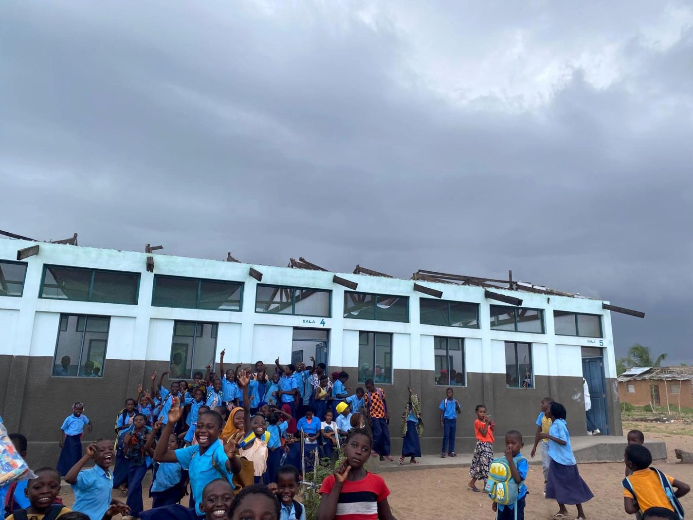 元気な表情の生徒たちとは対照的な、被害を受けた校舎/カーボデルガード州ペンバ市/2025.02.19 ©Good Neighbors Japan