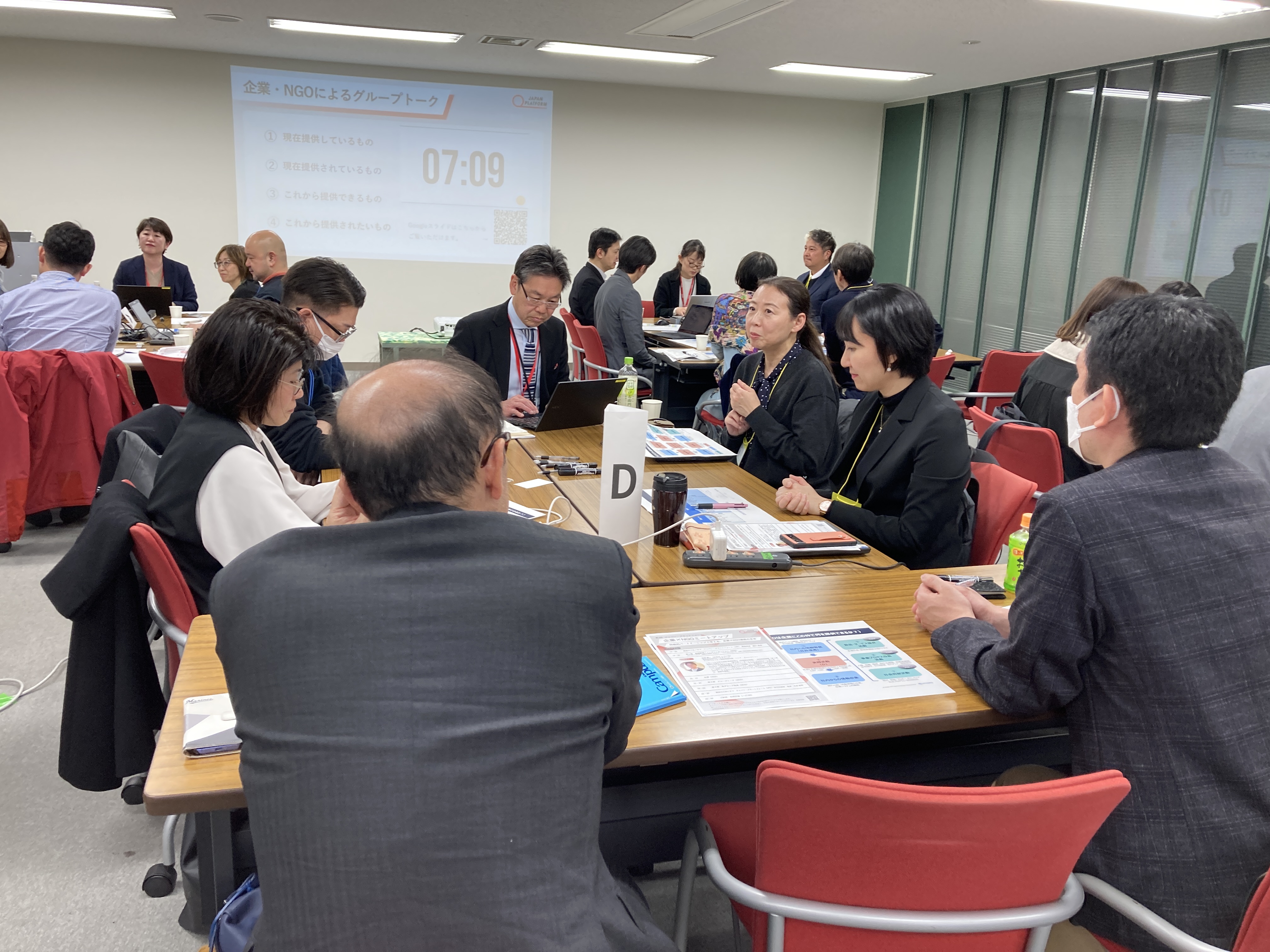 第二部では、企業とNGOが混合した少人数のグループに分かれ、「企業とNGOのそれぞれの提供価値を再確認する」をテーマにグループトークを行いました。