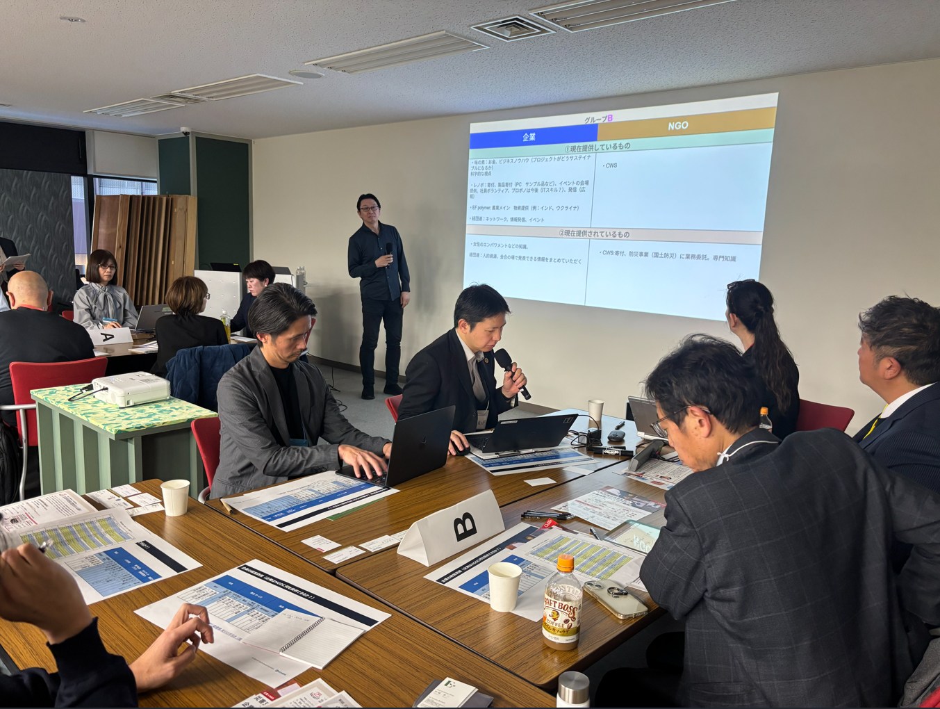 各グループでは、企業とNGOそれぞれの視点から多様なアイデアが出され、議論は大いに盛り上がりました。終了後の共有では、各テーブルから印象的な気づきや連携の可能性についての発表が行われ、会場全体で学びを共有する時間となりました。