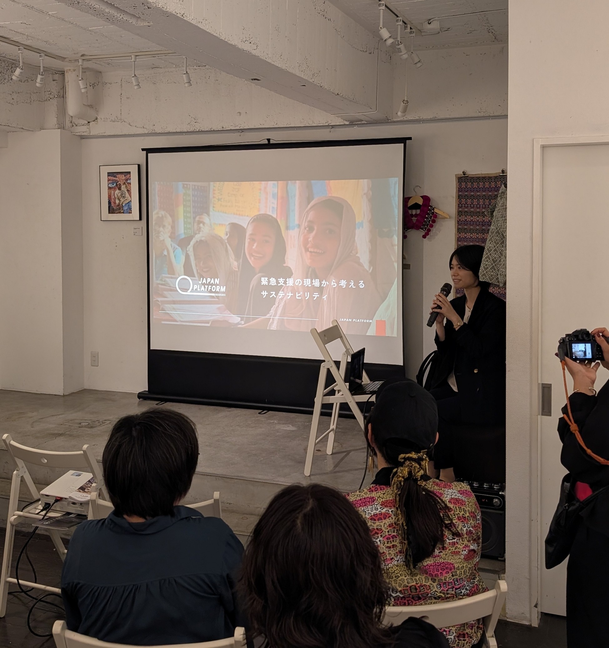 銀座屋上ギャラリー枝香庵にて4月初旬に開催された「日本画継環展」「銀座サステナブルファッション&アート展」の関連イベントにて、ジャパン・プラットフォーム(JPF)は4月11日・12日の2日間にわたり登壇し、国内外の緊急支援活動についてお話しする機会をいただきました。